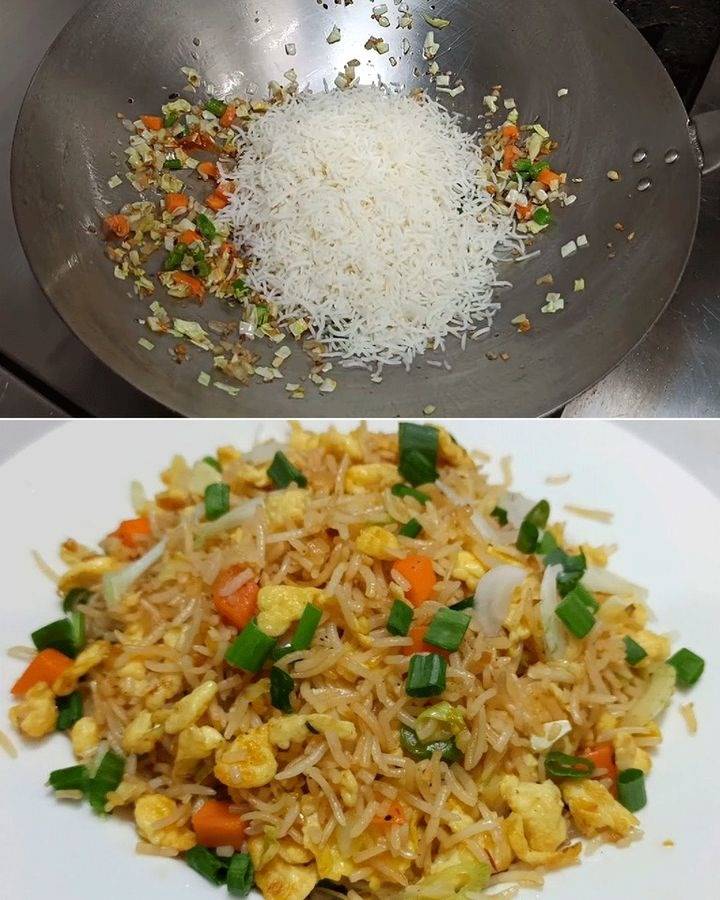 Ingrédients: 3 tasses de riz blanc préparé ½ tasse de paprika vert ½ tasse d’oignon ½ tasse de carotte râpée Maïs chinois en morceaux Huile et sauce soja Préparation: Lire la suite en page suivante