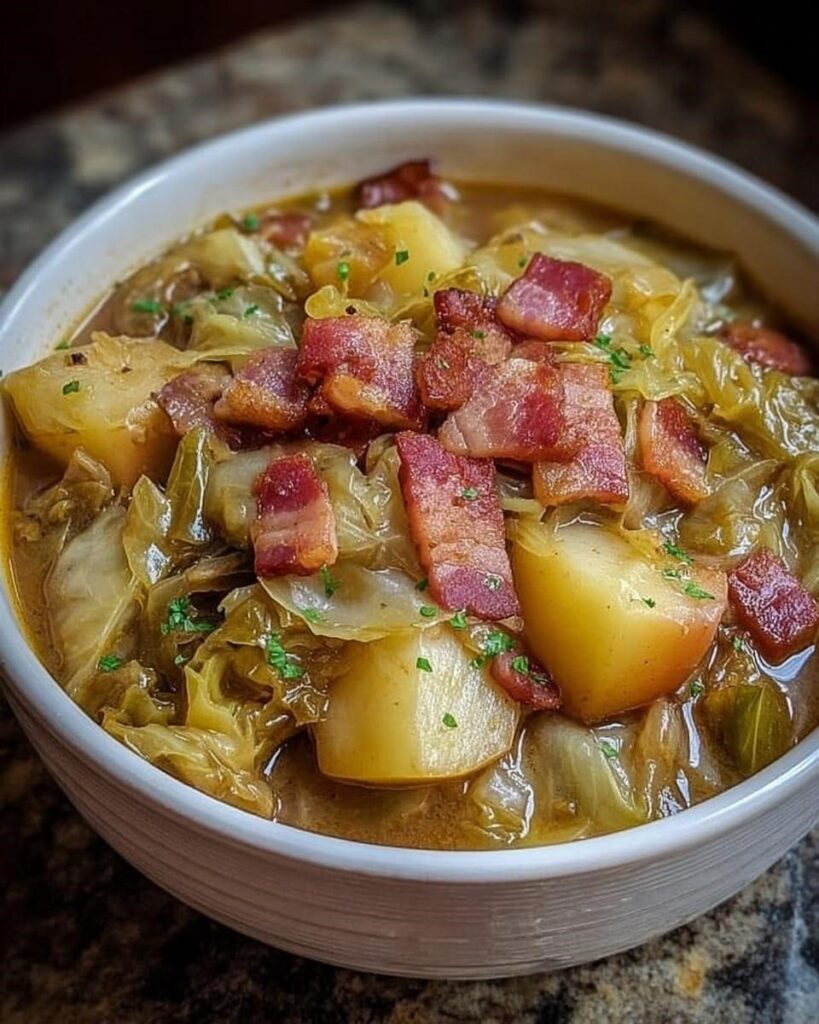 Chou mijoté avec pommes de terre et bacon