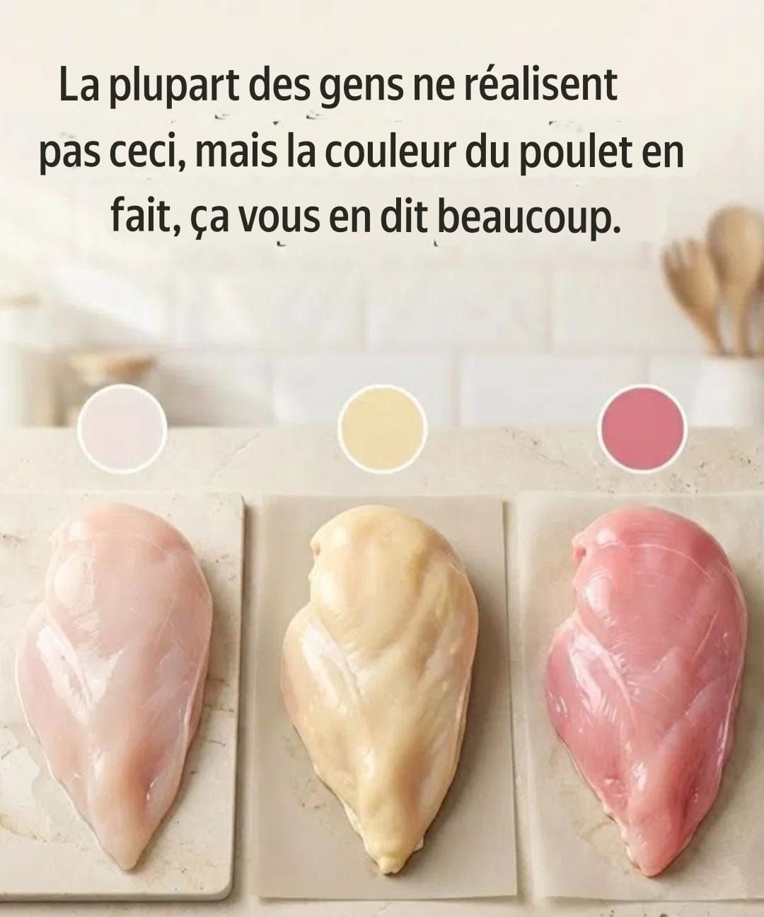 Ce paquet de poulet dans votre panier raconte peut-être une histoire que vous n’avez pas encore remarquée. Un plateau paraît clair, presque rosé. Un autre se distingue par sa couleur jaune intense. Même découpe. Prix similaire. Apparence totalement différente. Il est naturel de s’arrêter un instant et de se demander ce que signifie réellement ce contraste. L’un contient-il des additifs ? L’autre est-il plus nutritif ? Ou la couleur influence-t-elle simplement vos attentes avant même que vous ne lisiez l’étiquette ?