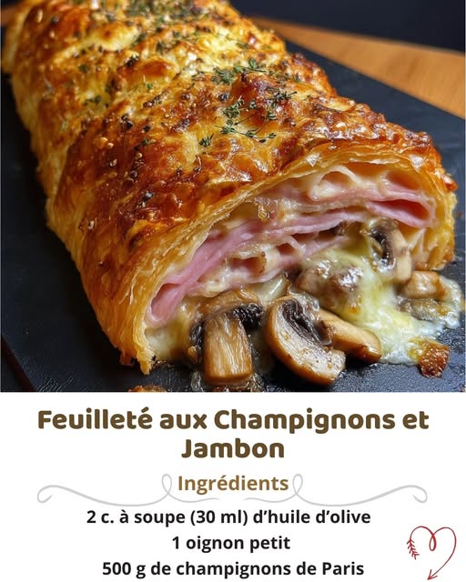 Ce feuilleté aux champignons et jambon est un plat savoureux et réconfortant,