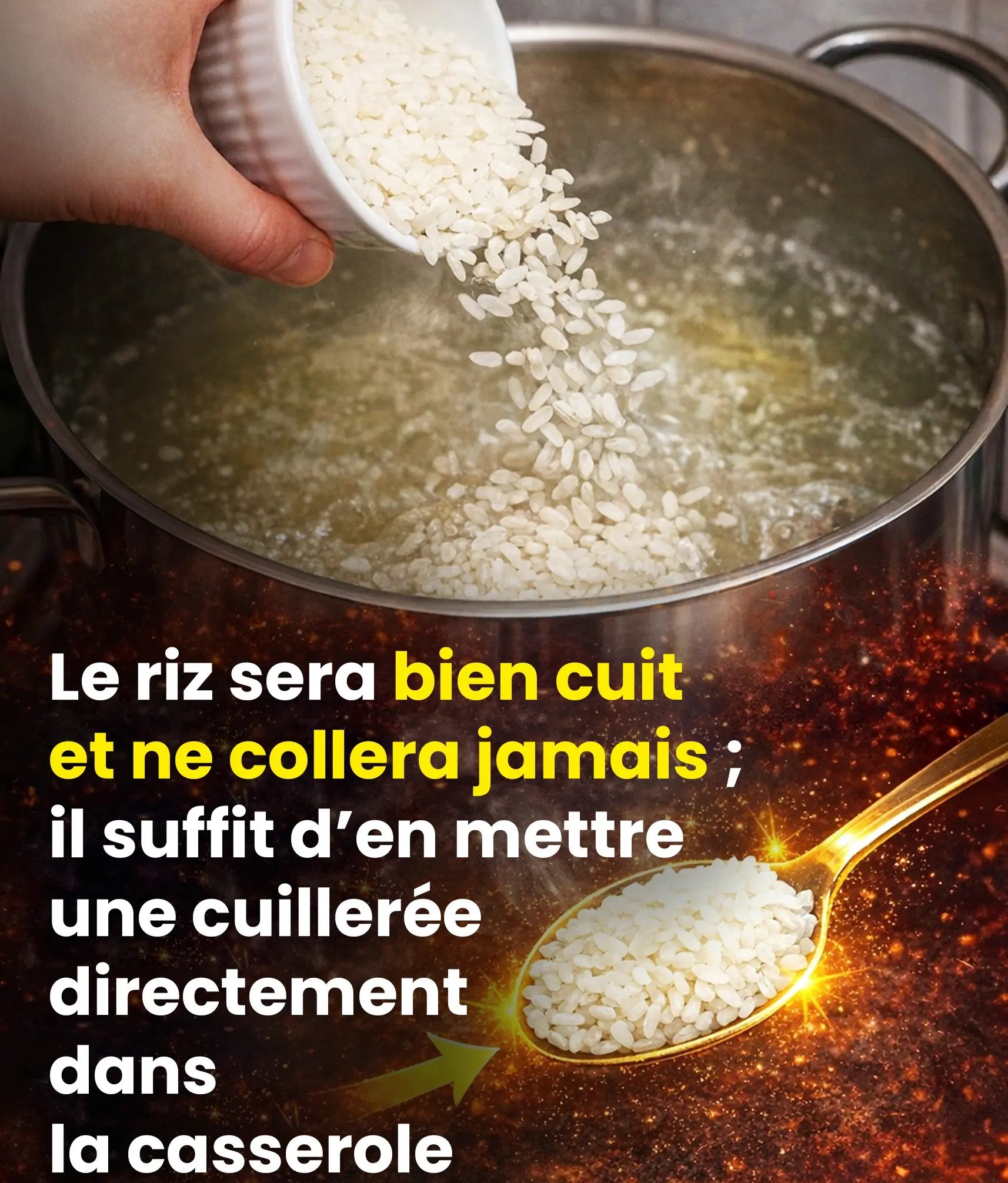 Le riz sera bien détaché et ne collera jamais ; il suffit d’en verser une cuillerée directement dans la casserole